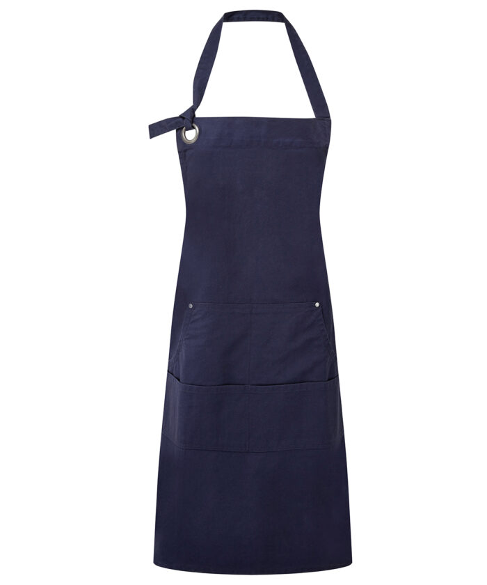 A stylish and functional addition to the Calibre apron range, this full bib apron features a kangaroo-style pocket divided into four handy compartments for ultimate convenience. Finished with rivet detailing and a gunmetal eyelet, it blends practicality with a touch of luxury.