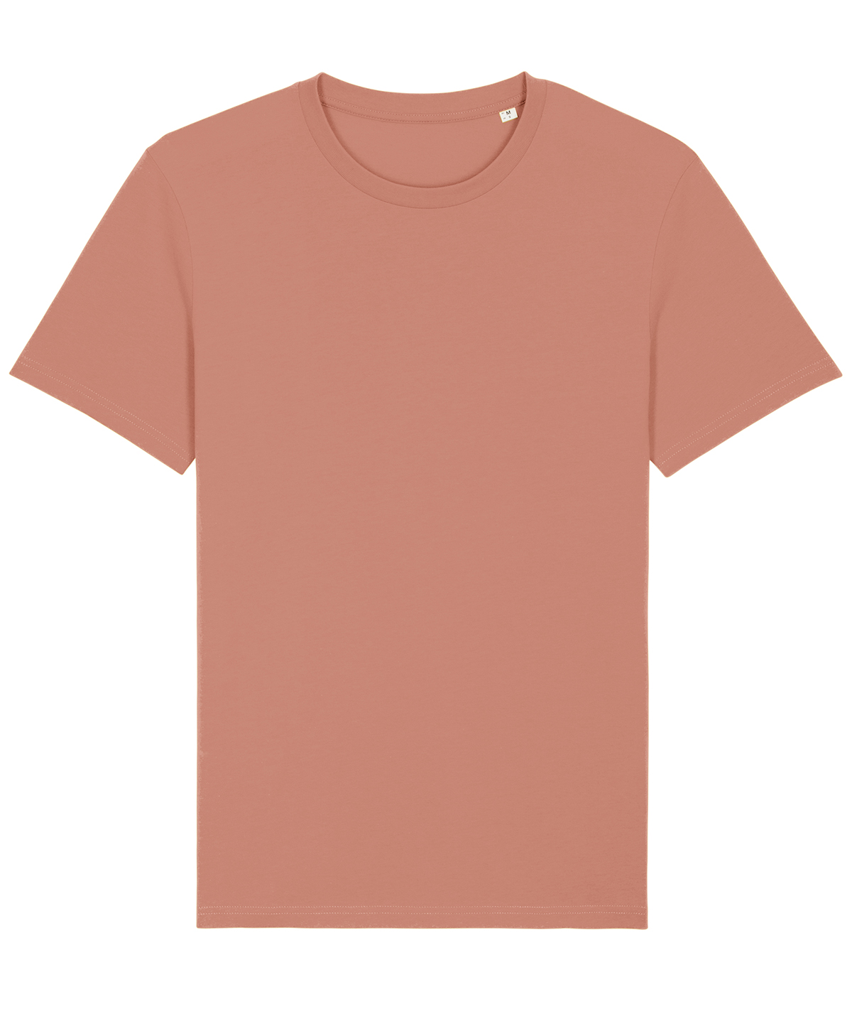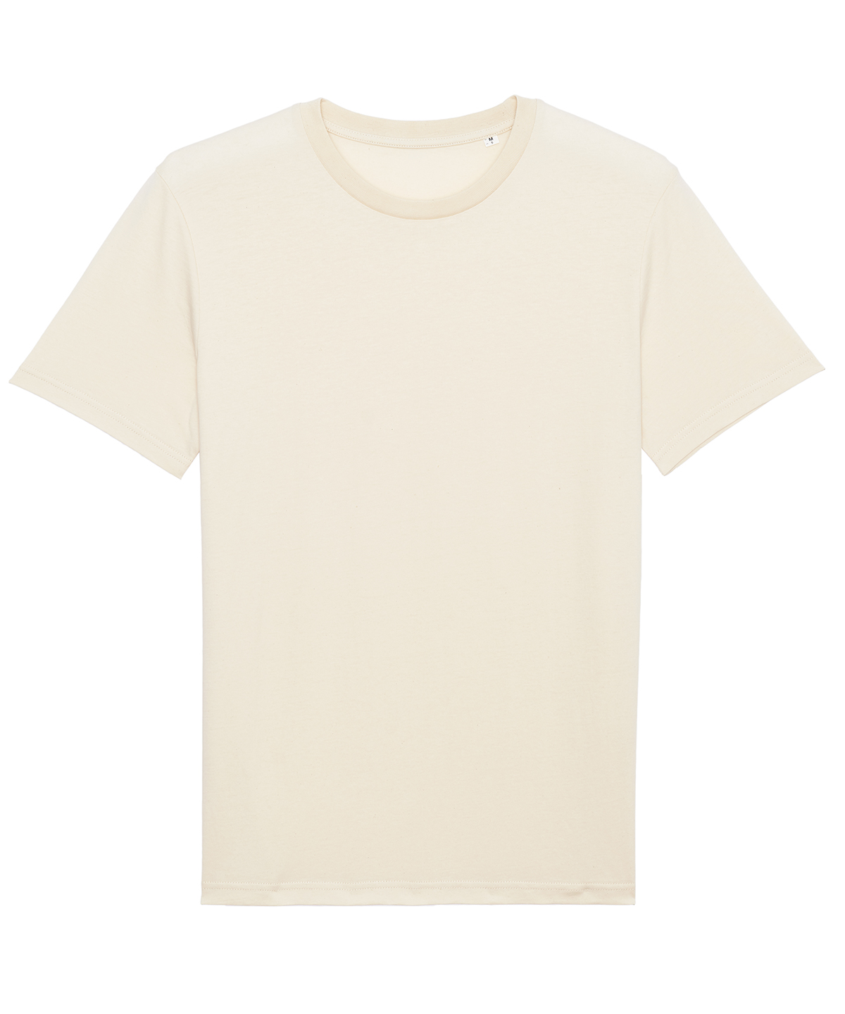 Key details include a 1×1 rib at the neck collar, set-in sleeves, and inside back neck tape in self-fabric for a polished finish. The sleeve hem and bottom hem are reinforced with wide double-needle topstitching for added durability. This medium-fit t-shirt features a short sleeve, round-neck design, making it versatile for any occasion.